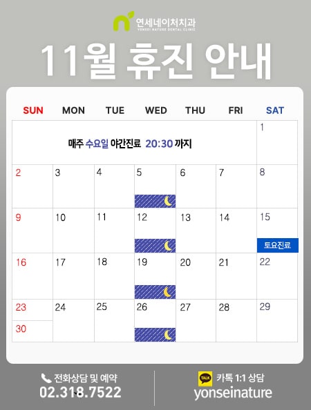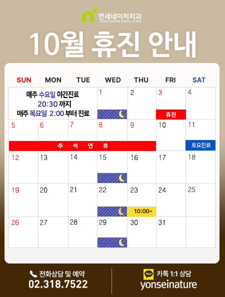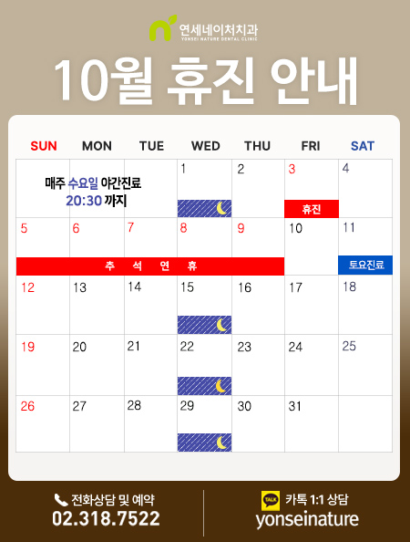 연세네이처치과 의원  대표 : 송창원  사업자등록번호 : 104-09-87393  대표전화 : 02-318-7522  팩스 : 02-2088-2881