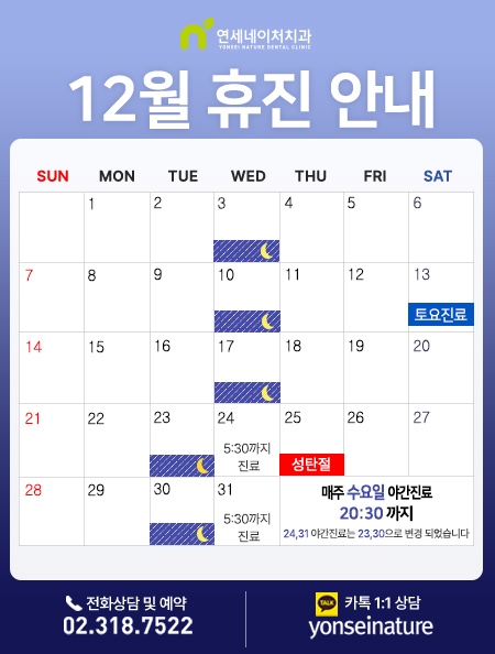 연세네이처치과 의원  대표 : 송창원  사업자등록번호 : 104-09-87393  대표전화 : 02-318-7522  팩스 : 02-2088-2881